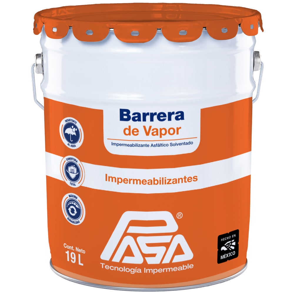 - PASA® Barrera de Vapor se usa para impermeabilizar superficies verticales y horizontales de mampostería, concreto, lámina, tabique, madera, asbesto y cemento, entre otros.