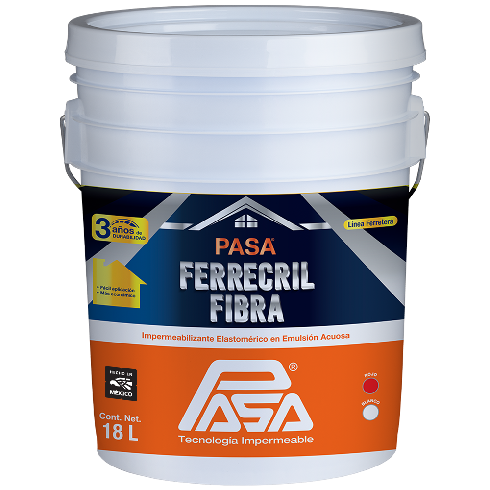 - PASA® Ferrecril Fibratado 3 años se usa para impermeabilizar superficies nuevas de casas habitación de interés social con techos de concreto.
