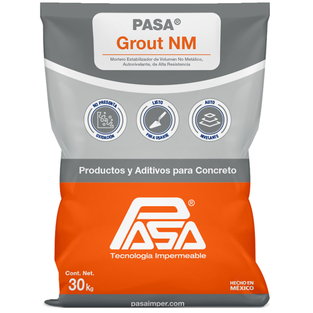 - PASA® GROUT NM se usa para asentar y nivelar maquinaria pesada; en anclaje de piezas precoladas y pretensadas; así como anclaje de pernos, barras, varillas y tornillos en concreto.