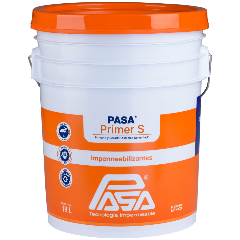 - Pasa® Primer S, se usa como primario adherente para recibir sistemas de impermeabilización o reimpermeabilización asfáltica base solvente de aplicación en frío como: Bitu Plus, PASA® Barrera de vapor y Elite Wet Roofing; así como de aplicación en caliente y en sistemas impermeables prefabricados como PASA® Instalador, PASA® Cover Ply, PASA® Pony Plas y PASA® Multi Cape.